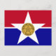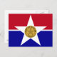 Vykort med flagga från staden Dallas, Texas; flagga med röda och blå horisontella band med stadens sigill inuti en vit stjärna i mitten