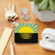 Nyckelkedjan Square med flagga Donetsk Oblast (Donetska oblast, Д о н е́ к budfinaucitamentering), blått, gult och svart flagga med ett stigning guld sol och tolv solstrålar