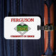 Bagagetag med flagga Ferguson, Missouri. En vit flagga med röd text och stadens grundande i grönten fält