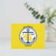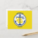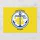 Vykort med staden Anchorage, Alaska; gul flagga med vitt sigill med en illustration av ett blått fartyg och ankare