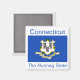En autentisk förstklassig kvalitetsbild av flagga för Connecticut mellan namn och smeknamn över en flagga-färg bakgrund.