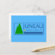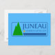 Vykort med flagga för staden Juneau, Alaska; blå flagga med stiliserad illustration av träd