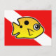 Det här är vår helt söta Skubadam Threespot Damselfish framför en dykdyvdykare flagga. Den söta fisken lever på korallrev runt södra Florida och Bahamas. Underbara gåvor här till dykare och snorkeler.