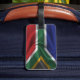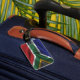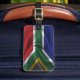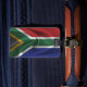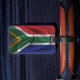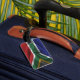 Bagagelapp med Sydafrikas flagga i vågig tygstil design. Denna design har sydafrikanska flaggans färger och design med en vacker vågande materialstruktur effekt. Denna flaggdesign är ett bra sätt att visa att du är stolt över att vara från Sydafrika.