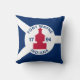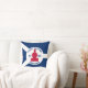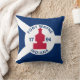 Dekorativ kudde med flagga av staden av Fort Wayne, Indiana; blått och vit sjunker och med det röda blockhuset i centrera och tre illustrationer i blåttfält - illustration av indian huvud, fransk fleur-de-lys och den lejona britten