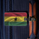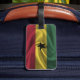 Bagagetaggen med flagga Ghana i designen av vågigt tyg stil. Den här designen har Ghanaian flagga färg och är utformad med en vacker texturerad effekt av vågmaterial. Den här flagga är ett underbart sätt att visa att du är stolt över att vara från Ghana.