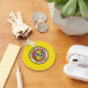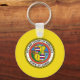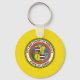 Button Keychain with flagga of Honolulu, Hawaii; gult flagga med försegling av Honolulu