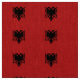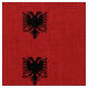 Officiell Albansk flagga. Underbar Flagga av Albaniens presentidéer och Albaniens handelsvaror. Underbara gåvor till albaner. Albaniens flagga är en röd flagga med en silhuetterad svart dubbla i centrum. Röden står för mod, styrka och värde, medan den dubbla örnen representerar den suveräna staten Albanien.