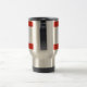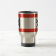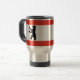 Resemugg med flagga i Berlin, statlig flagga med vågrät rand av rött och vitt, med en illustration av en svart björn i mitten