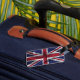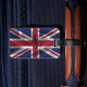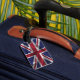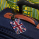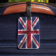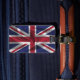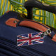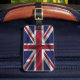 Bagagemärke med flagga i Förenade kungariket i utformningen av vågigt tyg stil. Den här designen har Union Jack, British flagga färg och är utformad med en vacker texturerad effekt av vågmaterial. Denna brittiska flagga är ett underbart sätt att visa att man är stolt över att vara från Förenade kungariket.