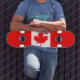 Kanadas officiell flagga. Röd maple löv på vit och röd bakgrund. Underbara gåvor med kanadensisk flagga av hög kvalitet.