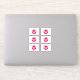 En uppsättning med 6 vinylklistermärken med en utformning med flagga Okinawa prefektur i Japan (沖 県, Okinawa-ken), en vit flagga med röd symbol