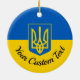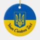 Runda keramiska prydnadsföremål med Ukrainas flagga, en blå och gult flagga med den ukrainska jacka av arm (emblem) med en trident i mitten och en anpassningsbar textmall för ditt meddelande
