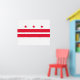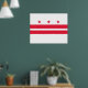 Denna utformning är utmärkande för flagga Washington D.C., som är Förenta staternas huvudstad. Washington grundades efter den amerikanska Revolutionen som regeringssäte för det nyligen bildade oberoende land, efter George Washington, Förenta Stater:s förste president och ett grundande Far. Som bas för Förenta Stater:s federala regering och flera internationell organisationer är Washington en viktig världspolitisk huvudstad. Washington ligger vid Potomakfloden, som gränsar till Maryland och Virginia. Staden är en av de mest besökta städerna i Förenade Stater.