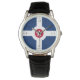 Titta med flagga Indianapolis, Indiana; blå flagga med vit kor och röd cirkel med vit stjärna i mitten