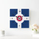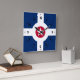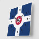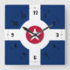 Klocka med flagga Indianapolis, Indiana; blå flagga med vit kor och röd cirkel med vit stjärna i mitten