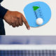 Pingpongpaddel med flagga av staden Juneau i Alaska; blå flagga med stiliserad illustration av träd