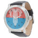 Lås med en konstruktion hos flagga Kansas City, Missouri. En röd och blåst flagga med en stiliserad vit emblem i mitten