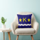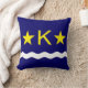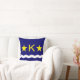 Dekorativ kudde med utformning med flagga av Kinshasa, Demokratiska republiken Kongos huvudstad, blå flagga med vit våg, två gyllene stjärnor och brev "K" i mitten