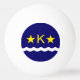 Utformningen av Ping Pong boll med flagga av Kinshasa, Demokratiska republiken Kongos huvudstad, blå flagga med vit våg, två gyllene stjärnor och brev "K" i mitten