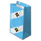 Papper väska med flagga av Madison, Wisconsin; ljusblå och vit flagga med svart kor och gult i mitten