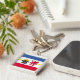 Square Keychain med flagga av Mecklenburg-Westerna Pommern; design med fem vågrät rand av rött, vitt, blått och gult