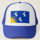 Hat med design med en flagga av det historiska grevskapet Merioneth i Wales, Underbar Storbritannien; blåazure flagga med tre vita getter och gult sol