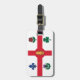 Bagagetag med flagga Montreal, den folkrikaste staden i provinsen Quebec i Kanada. En vit flagga med ett rött kor, ett vitt gräs, en blå Fleur-de-lys, en röd ros i Lancaster, en schamprock och en klyfta