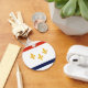 Button Keychain with flagga of city of New Orleans, Louisiana; white flagga with red and blue rand and three golden fleur-de-lys