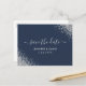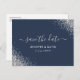 Meddela er marinblå och silver bröllopsfest till er familj och vänner med elegantens blåa och silver bröllop spara datum-vykort med gnidig silver glitter i med marinblå bakgrund. Anpassa enkelt onlinen. Matchande artiklar som är tillgängliga för att komplettera den här moderna versionen sparar datumvykortet.
