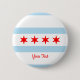 Anpassade Round Button med flagga of Chicago (Illinois största stad), vit och ljusblå strimlad flagga med fyra röda stjärnor