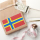 Sticker med formgivning med en flagga av det historiska grevskapet Orkney, i Skottland, Underbar Storbritannien; röd flagga med blå och gult Nordiska kor