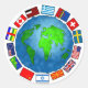 Illustration av jorden med världs flaggor som går runt utanför kant, som representerar mångfald, resor osv. Bild finns tillgänglig på olika presenter och produkter.