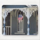 Den amerikanska flagga reflekterar i en stuga i Oak Bluffs på Martha's Vineyard. Martha's Vineyard CampMeeting Association (MVCMA), ett populärt attraktion på ön, är hem för hundratals Viktorianska gingerbröd. Oak Bluffs var gång känd som Cottage City. Martha's Vineyard ligger i Massachusetts, precis utanför Cape Cod.