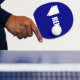 Pingpongpaddel med flagga av Reno, Nevada, blå flagga med vit form av Nevada med stjärnan som symboliserar Renos placering i delstaten