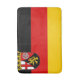 Badmat med flagga av Rheinland-Pfalz; design med vågräts tricolor svart, röd och gult (guldfärgad), med statens jacka av arm i det övre lämnat hörnet