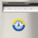 Magnet med flagga Riverside, Kalifornien. En gult och blå flagga med stadens försegling i mitten