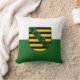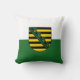 Dekorativ kudde med variant flagga av Sachsen; design med två vågrät av grönt och vitt och med statens jacka av arm i mitten