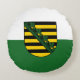 Rund fyllning med olika flagga av Sachsen; design med två vågräna av grönt och vitt och med statens jackande av arm i mitten