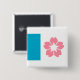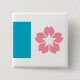 Knapp med design med flagga Salem, Oregon. En vit och blå flagga med en rosa körsbärsfläck