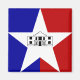 Magnet med flagga San Antonio, Texas. En blå och röd flagga med vit stjärna och en illustration av Alamo i mitten