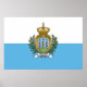 Denna utformning är utmärkande för San Marinos flagga (officiellt Republiken San Marino), som är en mikrostat i Sydeuropa som är helt innesluten av Italien. San Marino ligger på nordöstra sidan av Apennibergen. Dess huvudstad är San Marino och dess största bosättning är Dogana. Huvudstaden ligger på högsta plats i land på ett brant berg. San Marinos officiell är emellertid italienskt, Romagnol är regionens historiska språk och finns fortfarande i en annan ställning än officiell.