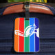 Luggage Tag med en design med flagga Sankt Petersburg i Florida. En flagga med orange, rött, grönt, blått och marint blått rand med en symbol för vit pelikan