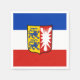 Papper napkin med variant flagga av Schleswig-Holstein; design med vågrät tricolor av rött, vitt och blått och med statens jackande av arm i mitten