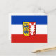 Vykort med variant flagga av Schleswig-Holstein; utformning med vågrät tricolor av rött, vitt och blått och med statens jackande av arm i mitten