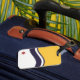 Bagagetag med en design med flagga South Bend, Indiana. En vit, blå och gult flagga med röd stjärna