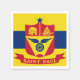 Papper napkin med flagga av staden Saint Paul, Minnesota, flagga med tre vågrät rand av blått och gult med rött emblem i mitten