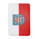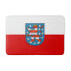 Badmat med variant flagga av Thüringen; design med två färgband av rött och vitt vågrät och emblem med lejont i mitten