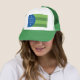 Truckerkeps med en design med flagga Bellingham, Washington. En grönt och blå flagga