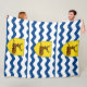 Fleece Blanket med design med en flagga av det historiska grevskapet Hertfordshire i England, Underbara Storbritannien; flagga med en illustration av en tagg i en gult sköld på vit och blå vågigt bakgrund
